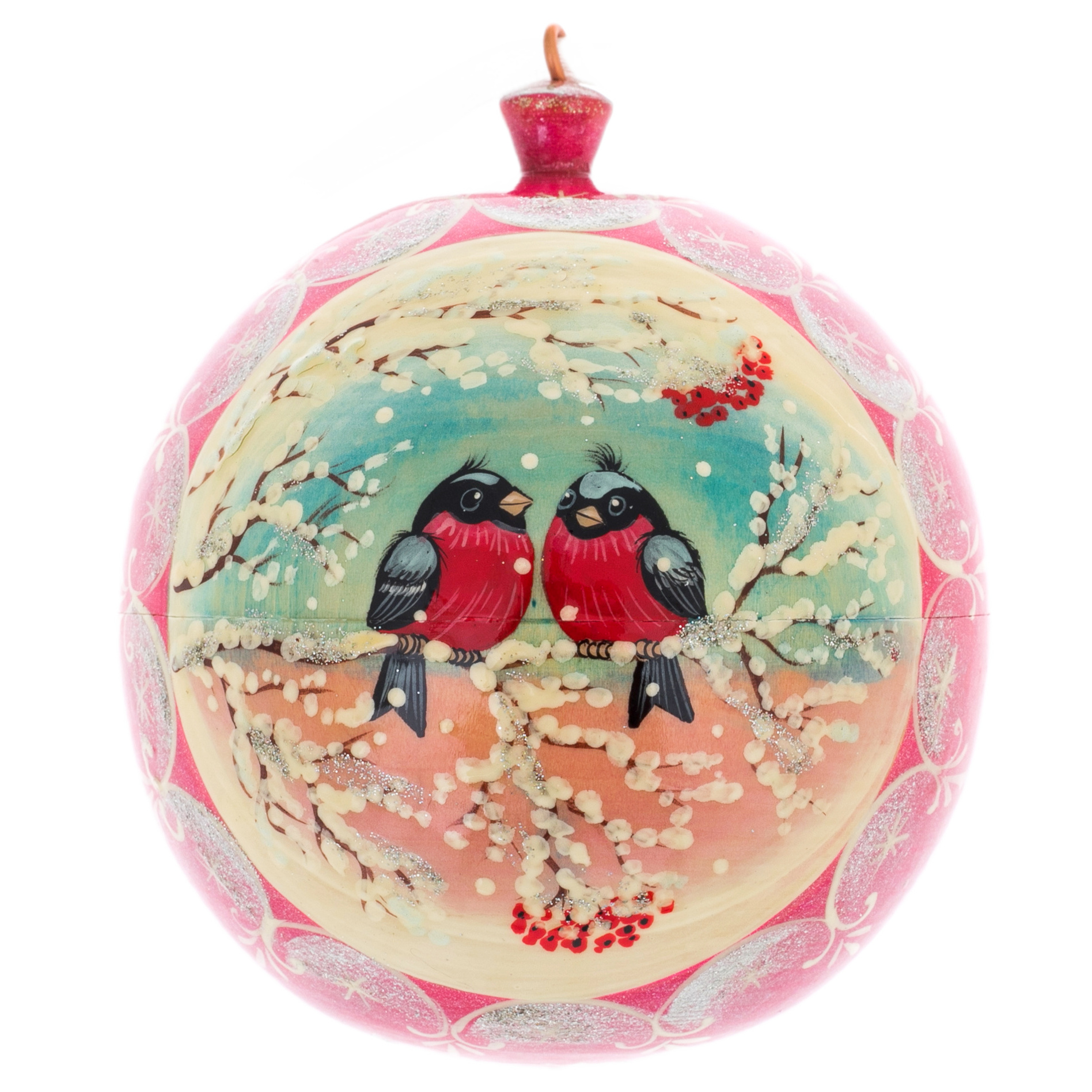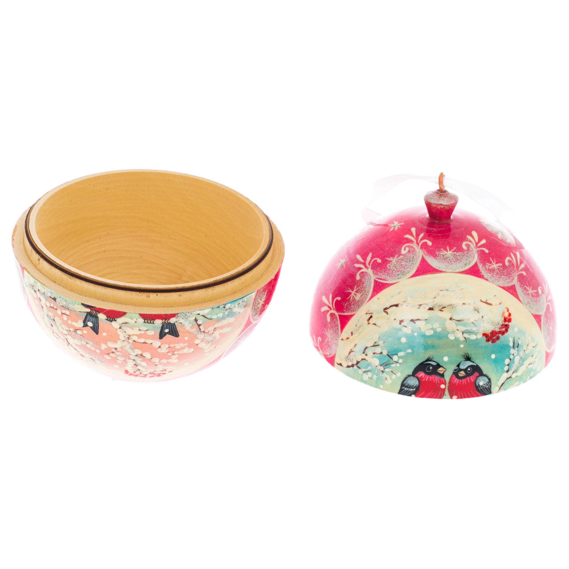 Каждая деталь его росписи, выполненной в лучших традициях русского декоративного искусства, дышит радостью и торжеством. Яркие краски, изящные орнаменты, волшебные узоры превращают этот шар в настоящее произведение искусства, пробуждая в душе воспоминания о тёплых вечерах у камина и ожидании зимнего чуда. Это не просто украшение для ёлки — это артефакт, хранящий в себе уют и сказку, которые всегда будут сопровождать его обладателя.