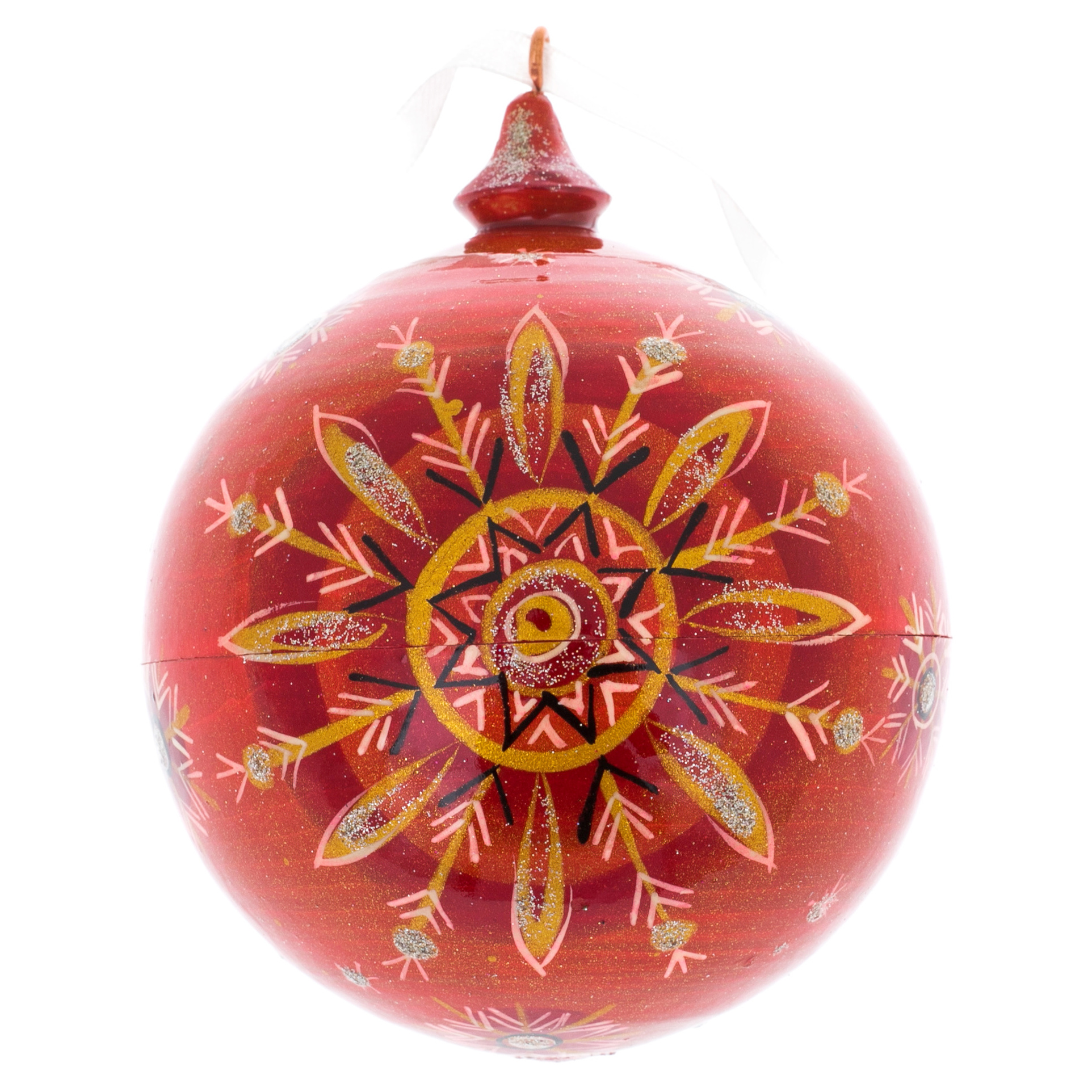 Каждая деталь его росписи, выполненной в лучших традициях русского декоративного искусства, дышит радостью и торжеством. Яркие краски, изящные орнаменты, волшебные узоры превращают этот шар в настоящее произведение искусства, пробуждая в душе воспоминания о тёплых вечерах у камина и ожидании зимнего чуда. Это не просто украшение для ёлки — это артефакт, хранящий в себе уют и сказку, которые всегда будут сопровождать его обладателя.