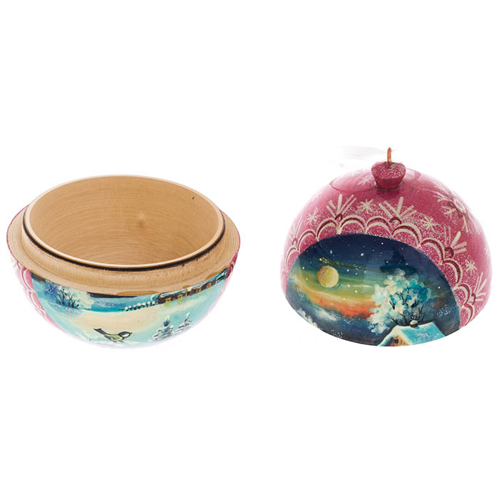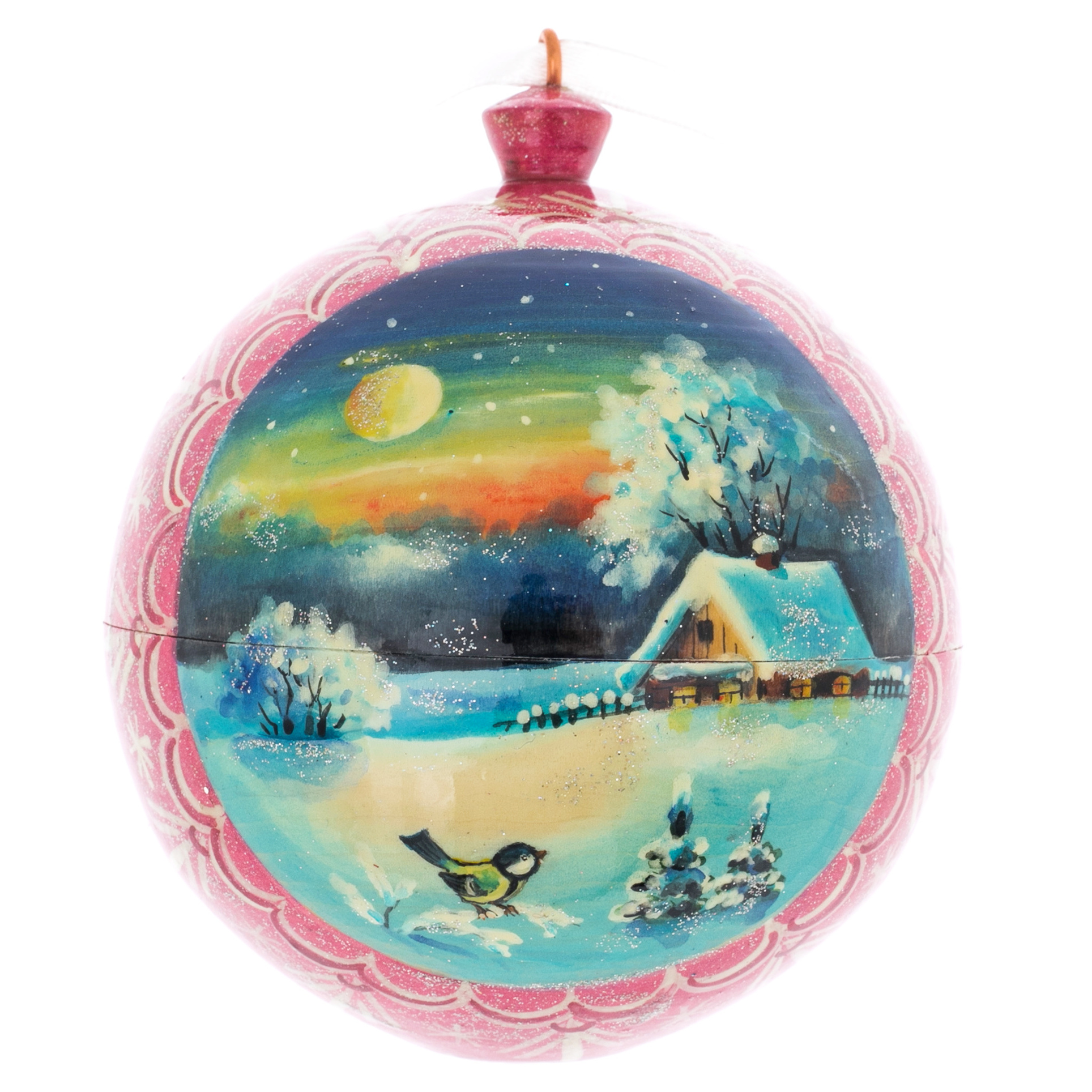 Ёлочный шар-шкатулка "Синица в зимнюю ночь" розовый