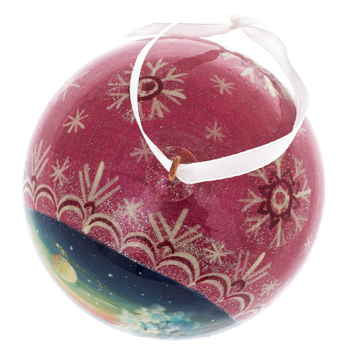 Каждая деталь его росписи, выполненной в лучших традициях русского декоративного искусства, дышит радостью и торжеством. Яркие краски, изящные орнаменты, волшебные узоры превращают этот шар в настоящее произведение искусства, пробуждая в душе воспоминания о тёплых вечерах у камина и ожидании зимнего чуда. Это не просто украшение для ёлки — это артефакт, хранящий в себе уют и сказку, которые всегда будут сопровождать его обладателя.