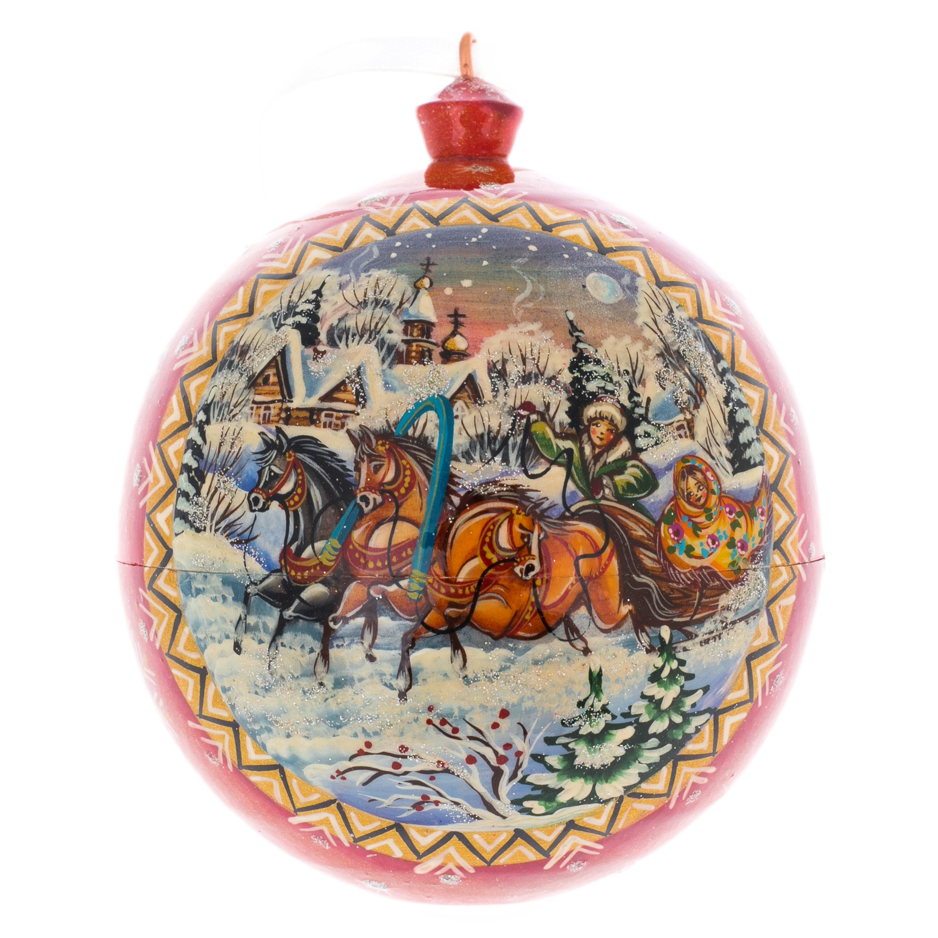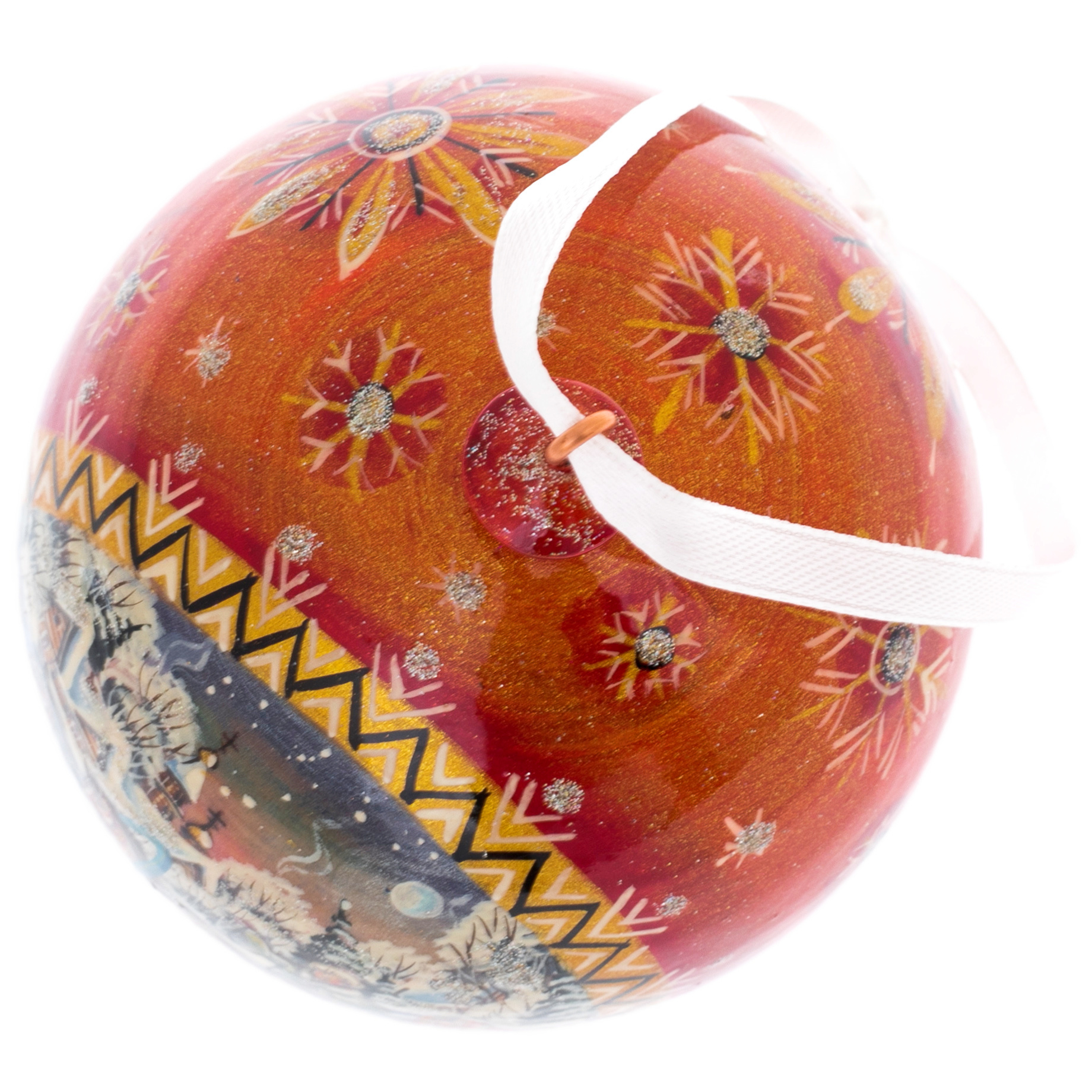 Каждая деталь его росписи, выполненной в лучших традициях русского декоративного искусства, дышит радостью и торжеством. Яркие краски, изящные орнаменты, волшебные узоры превращают этот шар в настоящее произведение искусства, пробуждая в душе воспоминания о тёплых вечерах у камина и ожидании зимнего чуда. Это не просто украшение для ёлки — это артефакт, хранящий в себе уют и сказку, которые всегда будут сопровождать его обладателя.