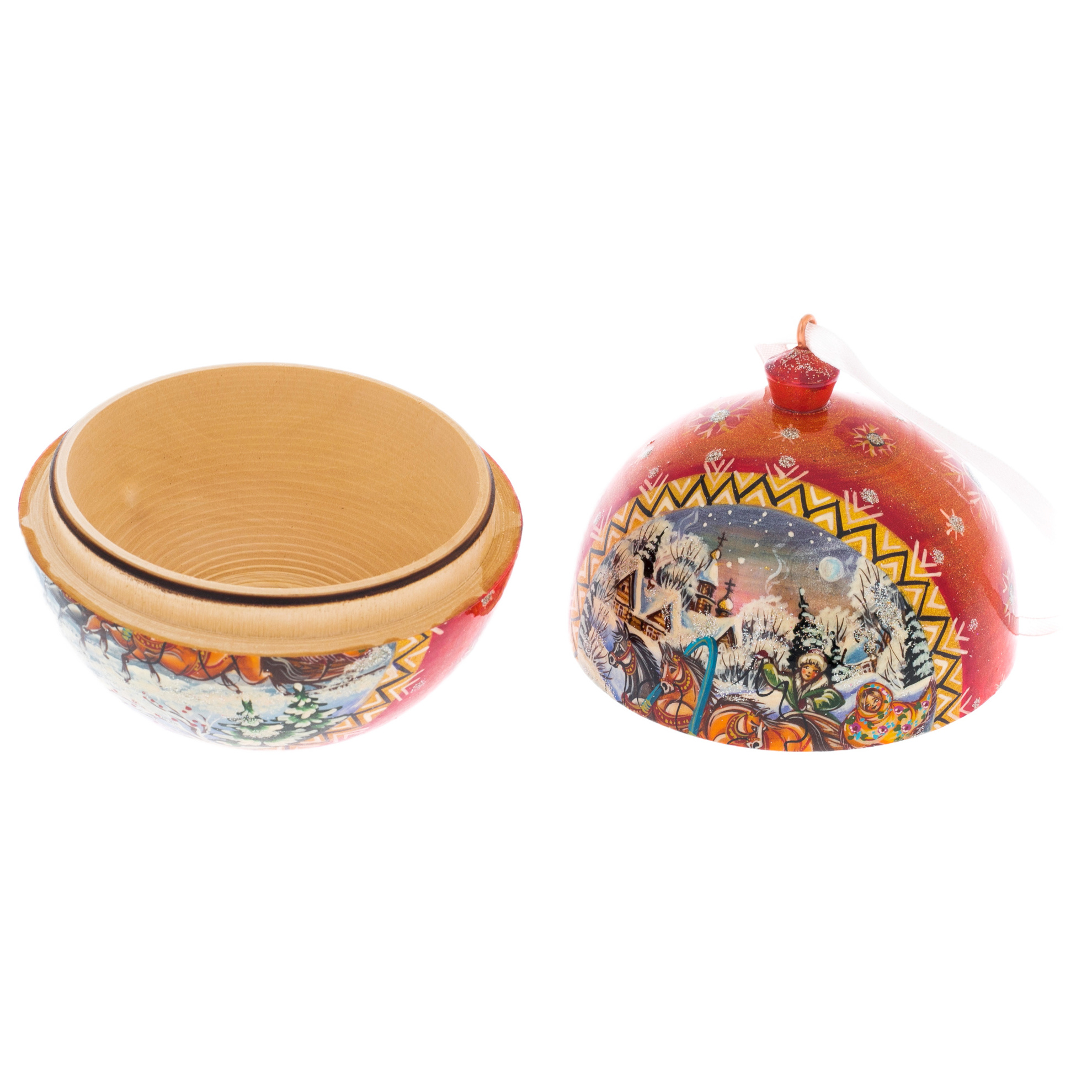 Ёлочный шар-шкатулка "Зимняя тройка" красный