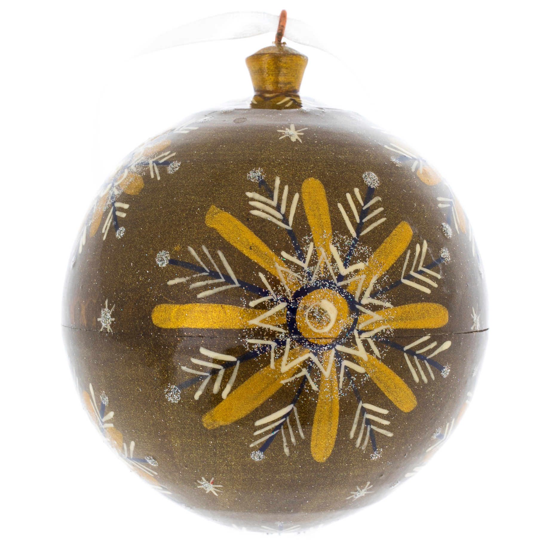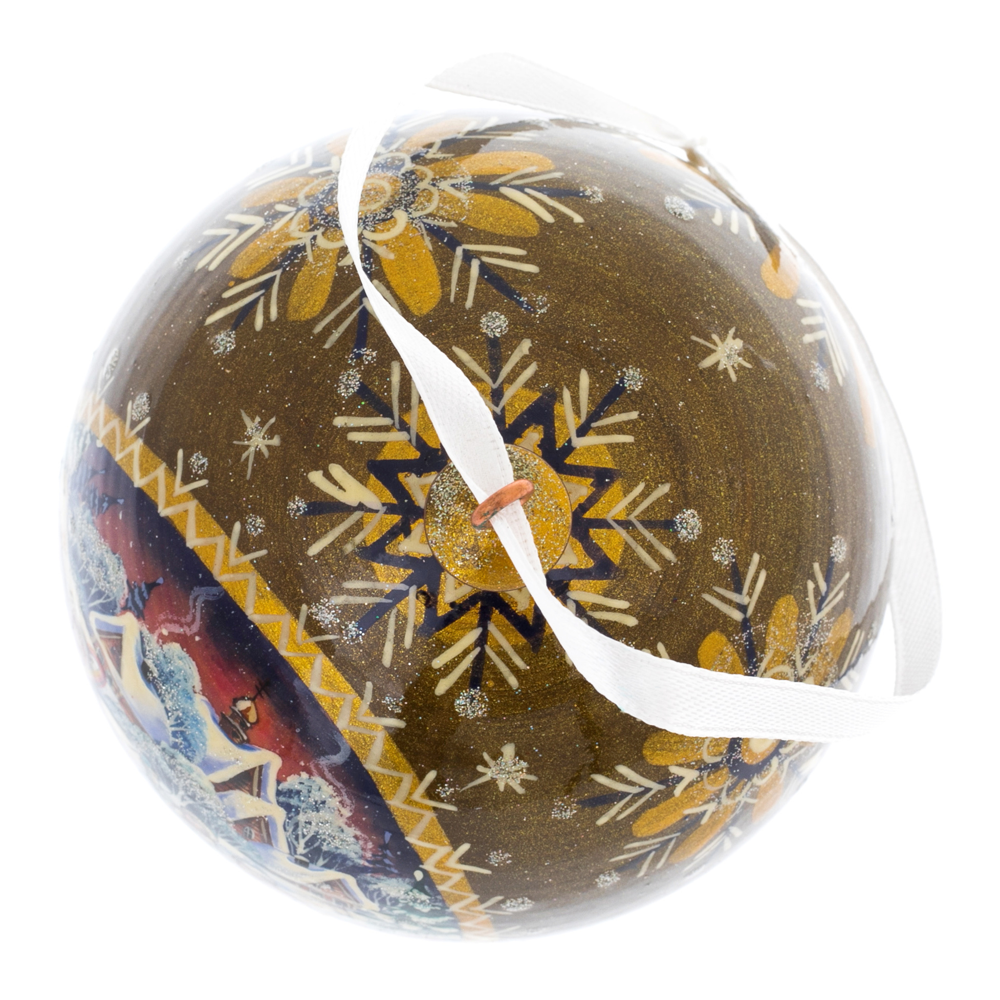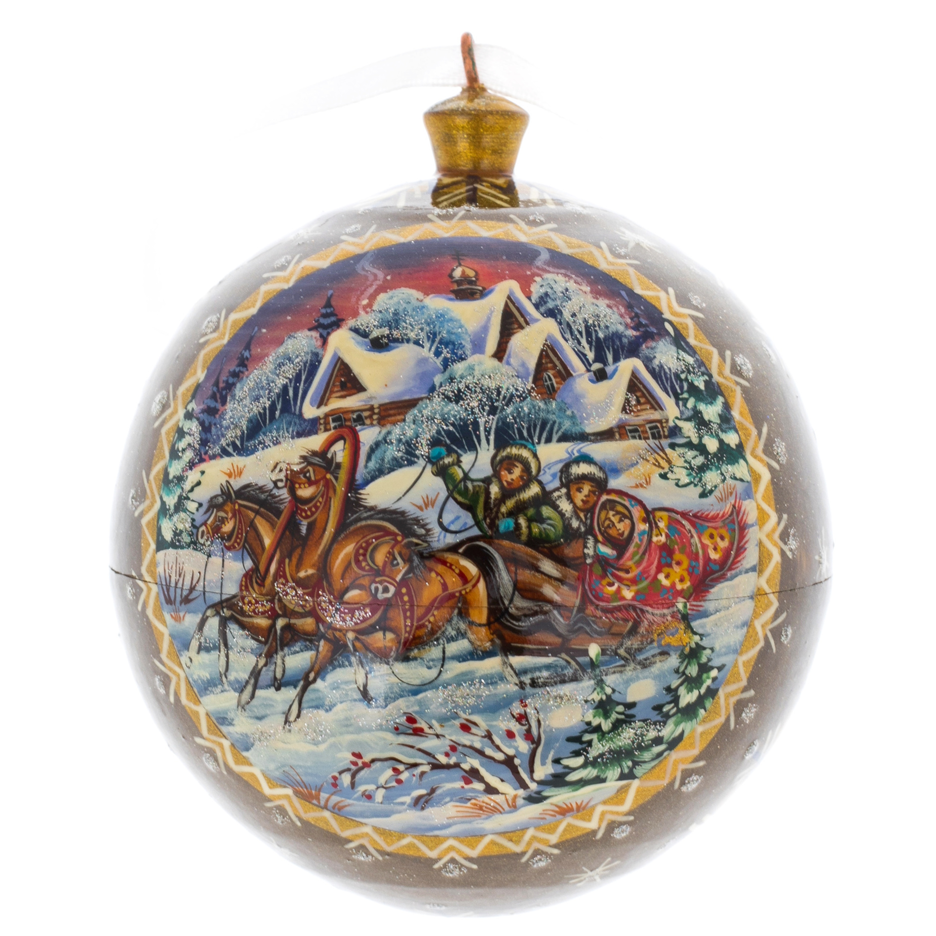 Каждая деталь его росписи, выполненной в лучших традициях русского декоративного искусства, дышит радостью и торжеством. Яркие краски, изящные орнаменты, волшебные узоры превращают этот шар в настоящее произведение искусства, пробуждая в душе воспоминания о тёплых вечерах у камина и ожидании зимнего чуда. Это не просто украшение для ёлки — это артефакт, хранящий в себе уют и сказку, которые всегда будут сопровождать его обладателя.