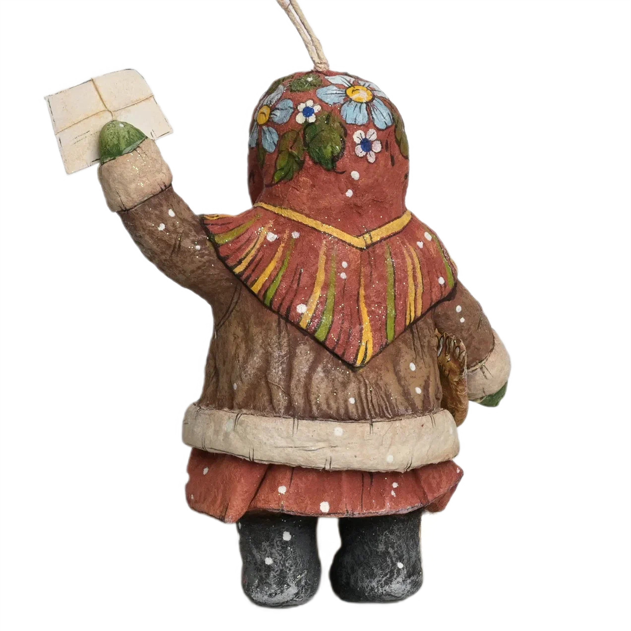Коллекционная елочная ватная игрушка "Акулинка с письмом" из коллекции "Русский север"