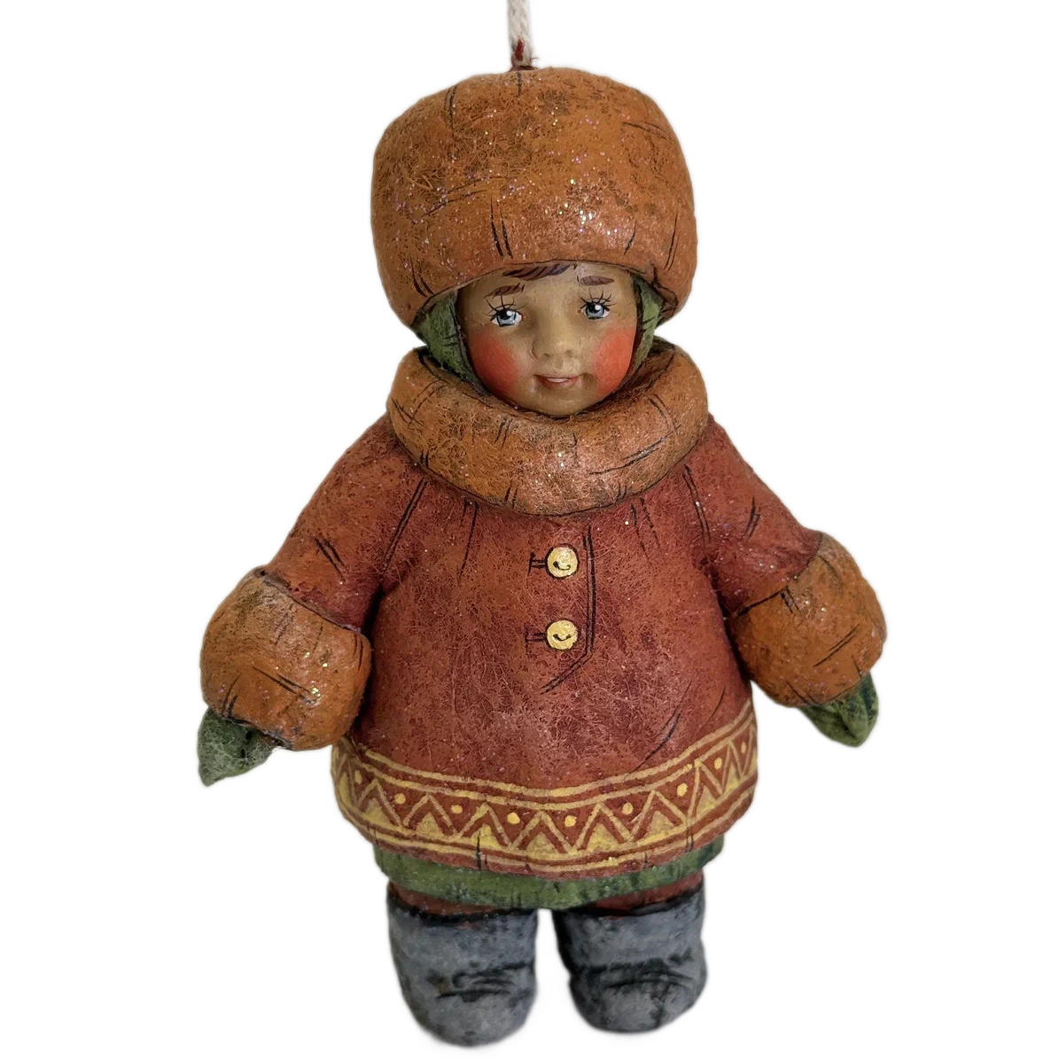 Коллекционная елочная ватная игрушка "Аленка в кубанке" из коллекции "Русский север"