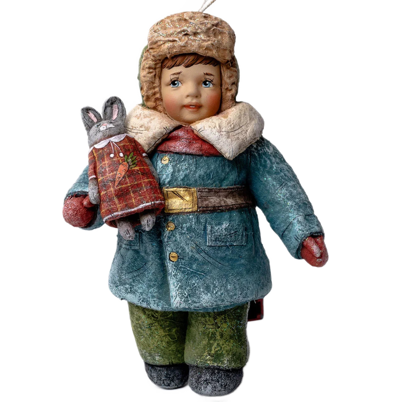 Коллекционная елочная ватная игрушка "Алешенька с игрушечным зайчиком" из коллекции "Советское детство"