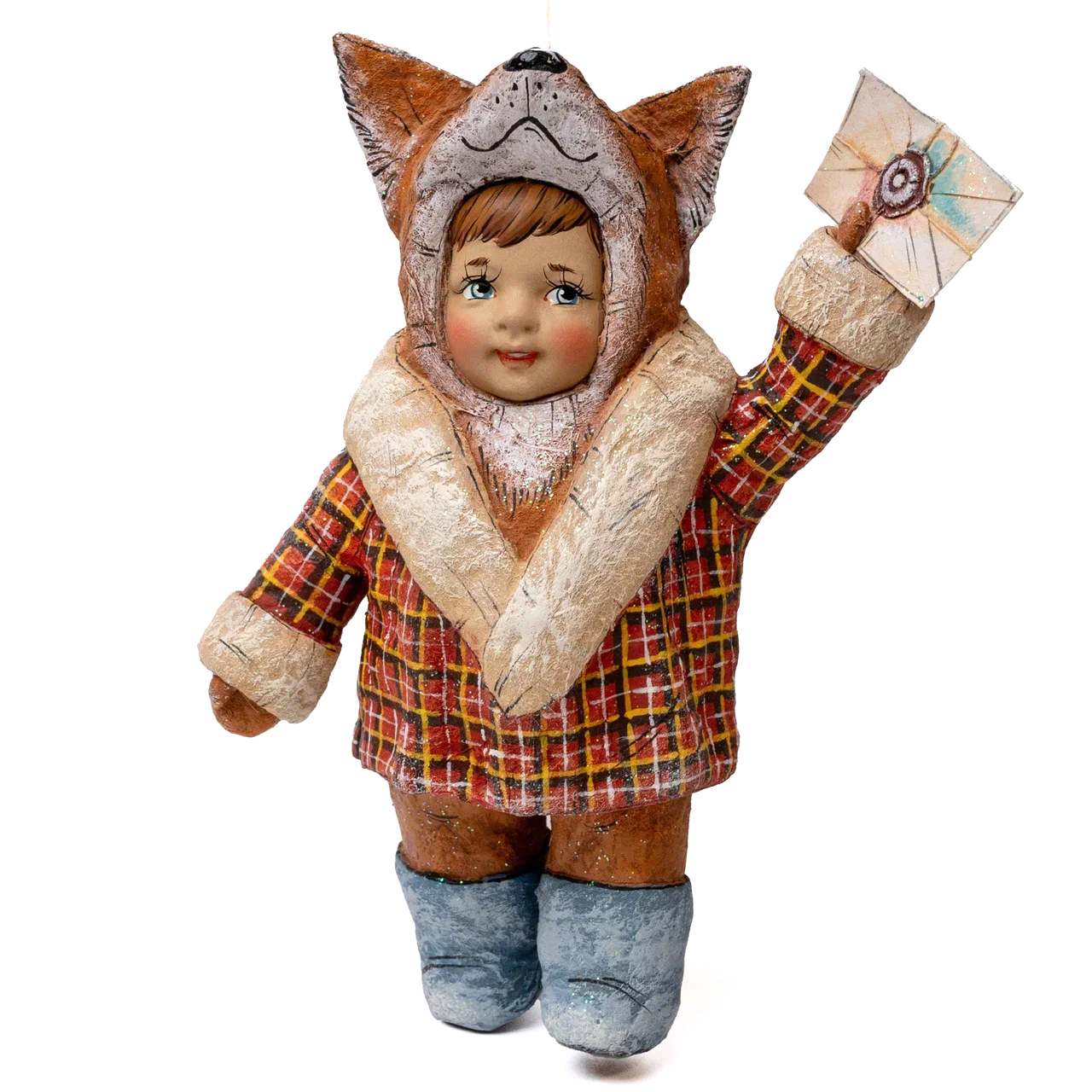 Коллекционная елочная ватная игрушка "Амина в костюме лисички" из коллекции "Детский утренник"