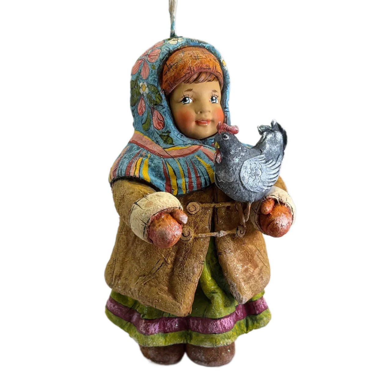 Коллекционная елочная ватная игрушка "Анисья с курочкой" из коллекции "Русский север"