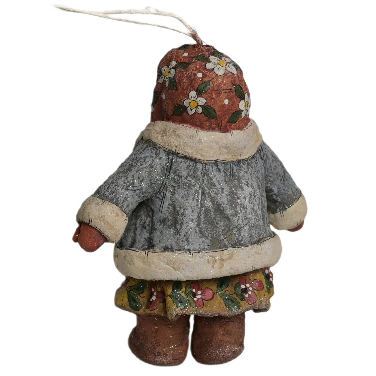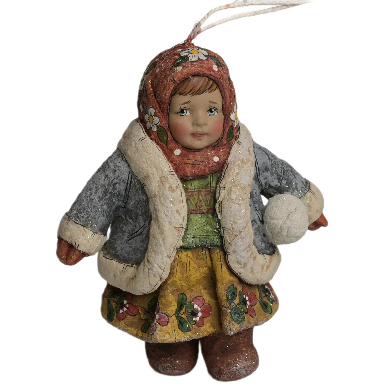 Коллекционная елочная ватная игрушка "Аринушка со снежком" из коллекции "Русский север"