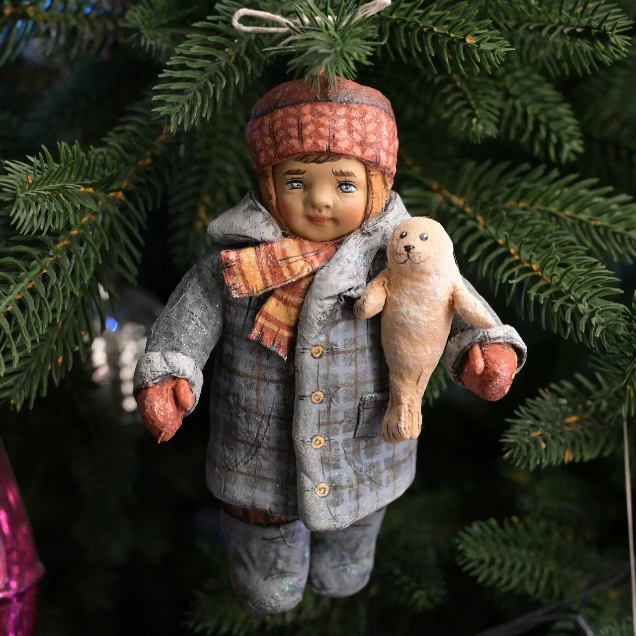 Коллекционная елочная ватная игрушка "Арсений с бельком" из коллекции "Советское детство"