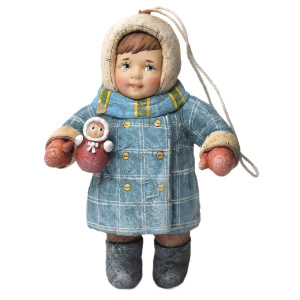 Коллекционная елочная ватная игрушка "Ясечка с матрешкой" из коллекции "Советское детство"