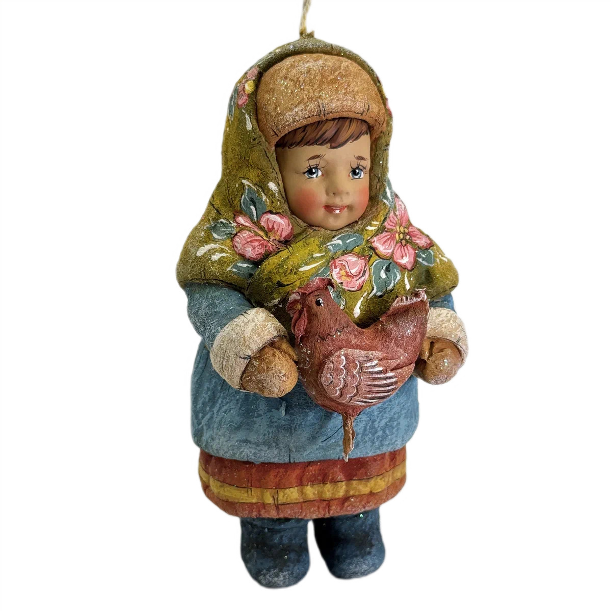 Коллекционная елочная ватная игрушка "Ясенька с курочкой" из коллекции "Русский север"