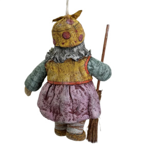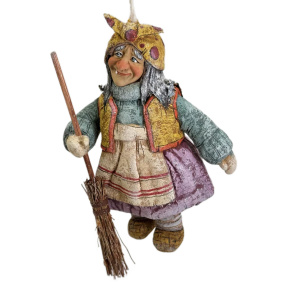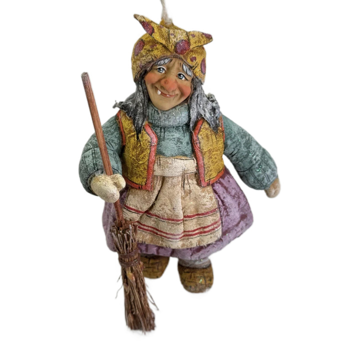 Коллекционная елочная ватная игрушка "Баба-Яга с метлой" из коллекции "Сказки мира"