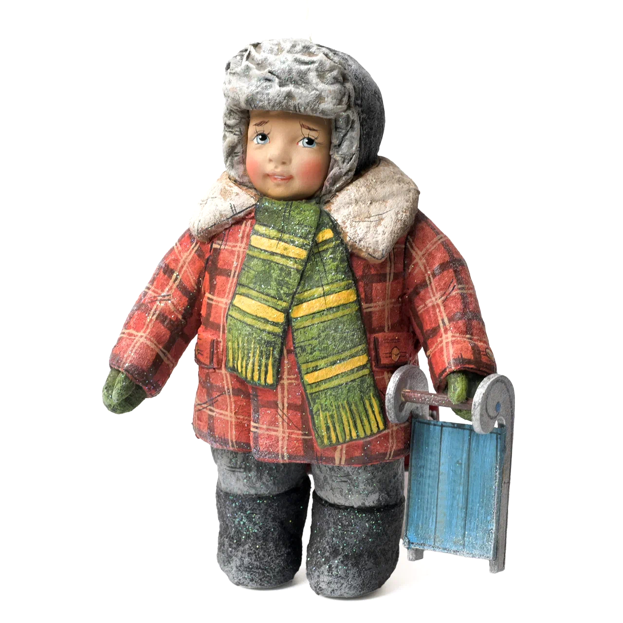 Коллекционная елочная ватная игрушка "Данилушка с саночками" из коллекции "Зимние забавы"