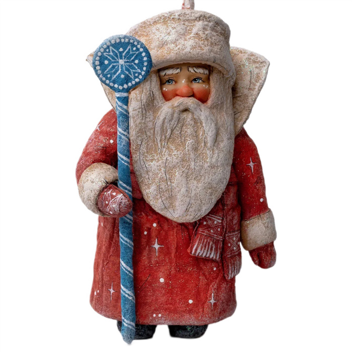 Коллекционная елочная ватная игрушка "Дед Мороз с посохом" из коллекции "Новый год"