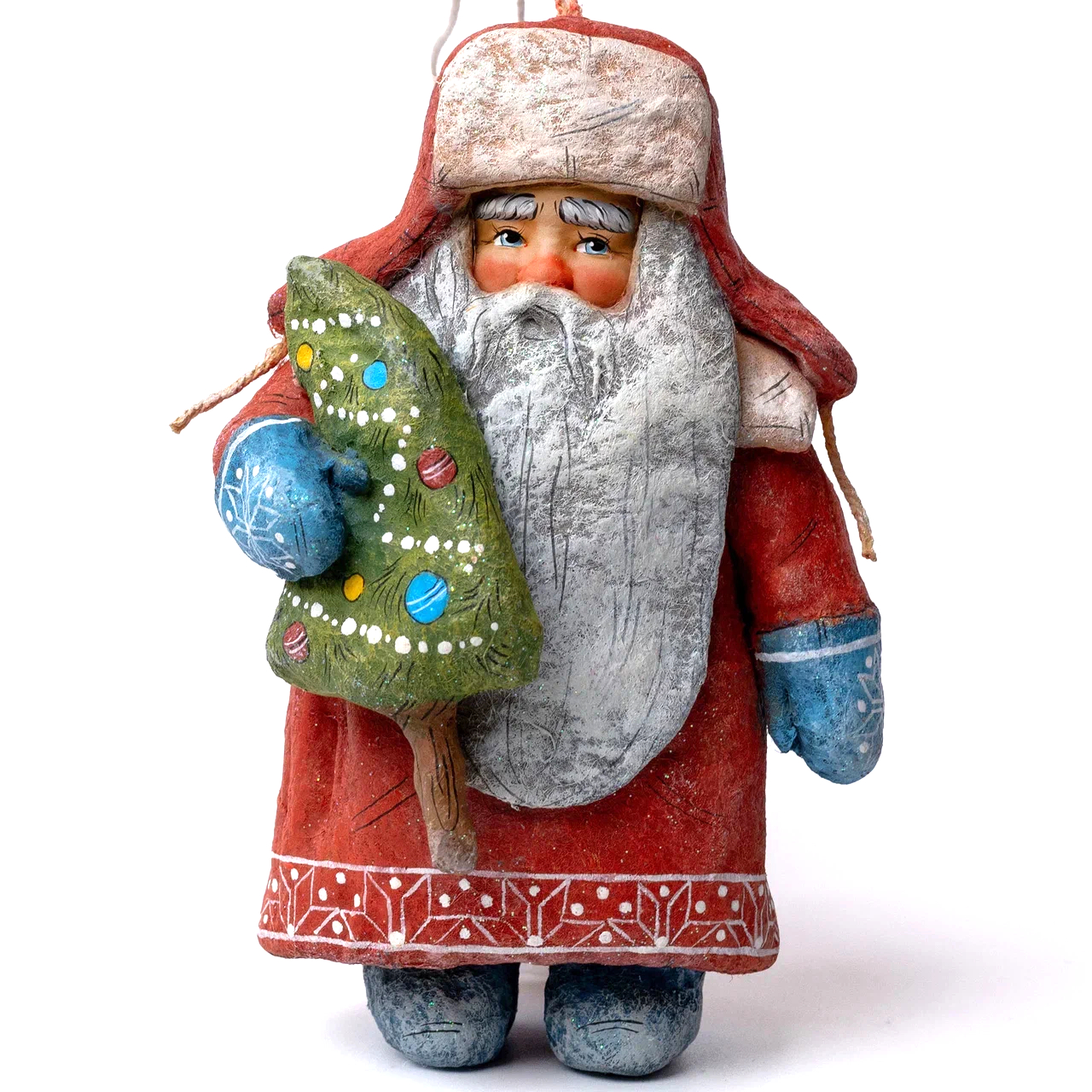 Коллекционная елочная ватная игрушка "Дед Мороз в ушанке с елочкой" из коллекции "Новый год"
