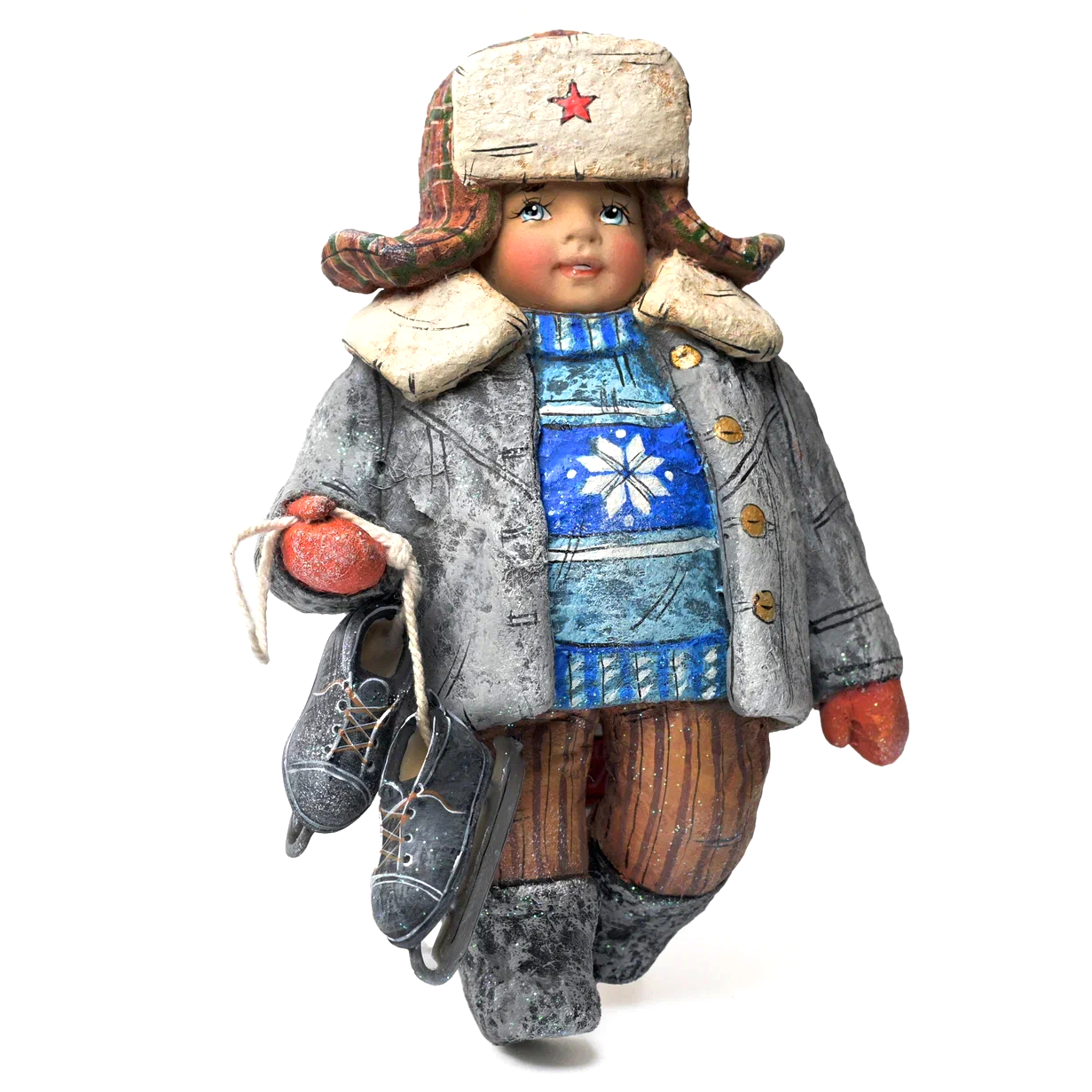 Коллекционная елочная ватная игрушка "Демьян с коньками" из коллекции "Зимние забавы"