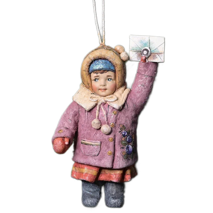 Коллекционная елочная ватная игрушка "Девочка с письмом" из коллекции "Советское детство"