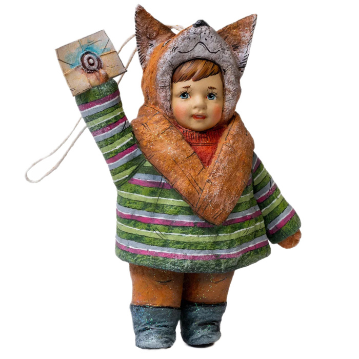 Коллекционная елочная ватная игрушка "Эмилия в костюме лисички" из коллекции "Детский утренник"