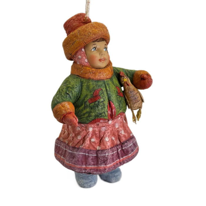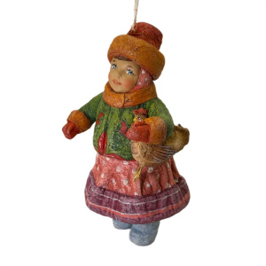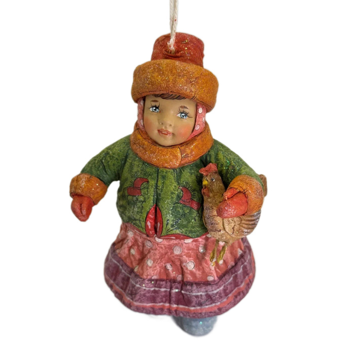 Коллекционная елочная ватная игрушка "Евдокия с курочкой" из коллекции "Русский стиль"