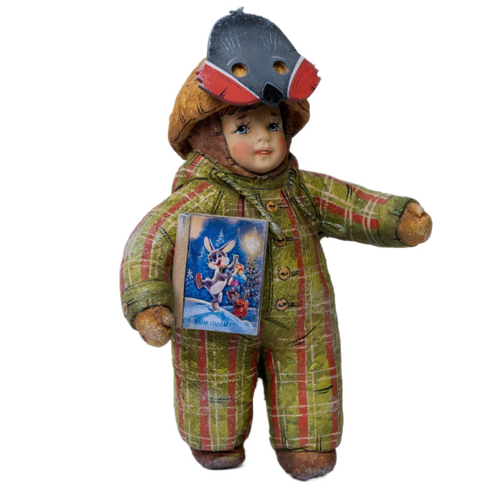 Коллекционная елочная ватная игрушка "Игореша в маске снегиря" из коллекции "Детки в масках"