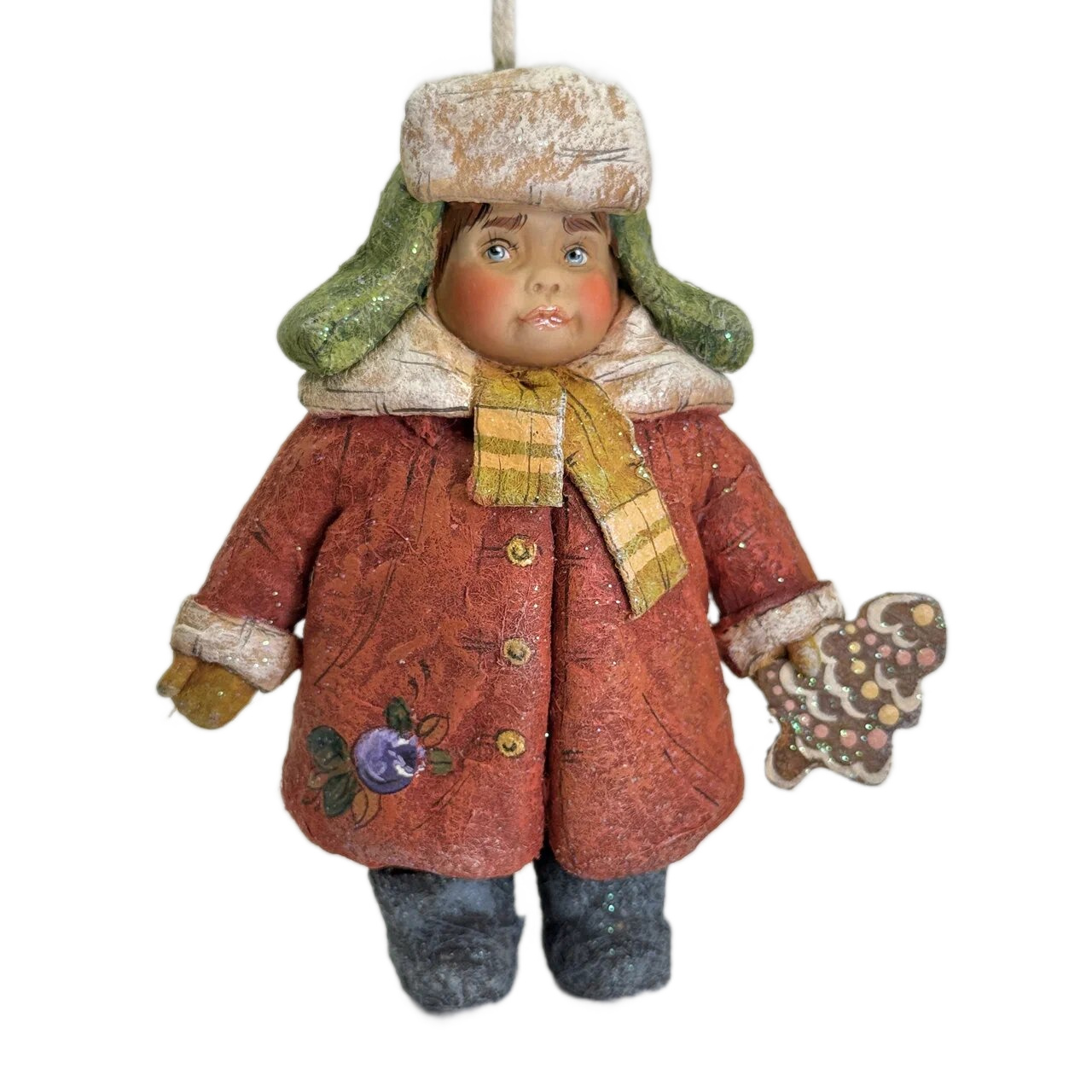 Коллекционная елочная ватная игрушка "Карапуз с пряником" из коллекции "Советское детство"