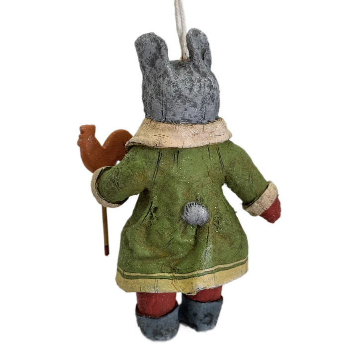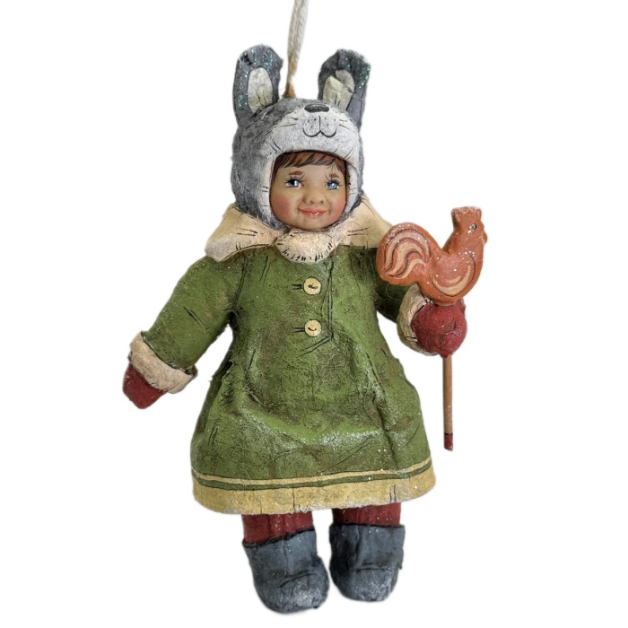 Коллекционная елочная ватная игрушка "Кирушка в костюме зайчика" из коллекции "Детский утренник"