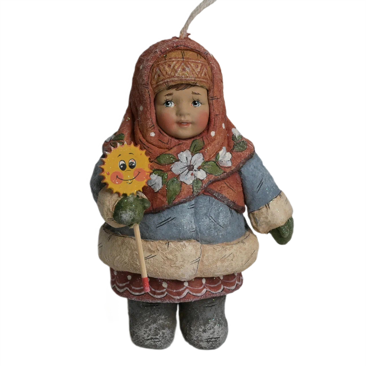 Коллекционная елочная ватная игрушка "Клавдия с леденцом-солнышком" из коллекции "Русский север"