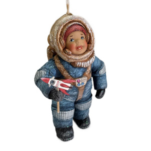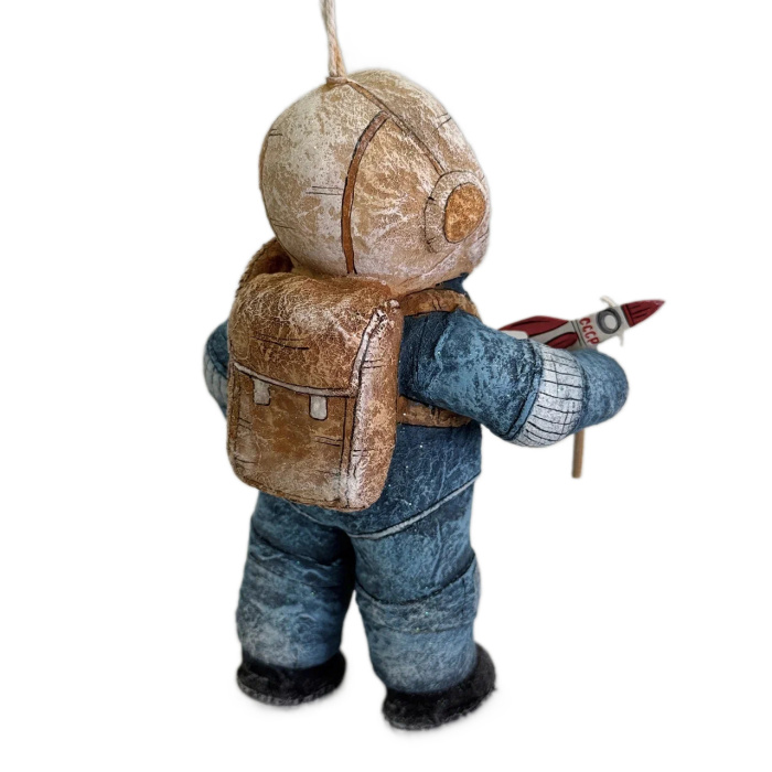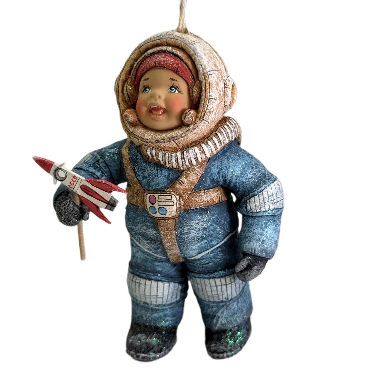 Коллекционная елочная ватная игрушка "Космонавт в голубом скафандре" из коллекции "Профессии"