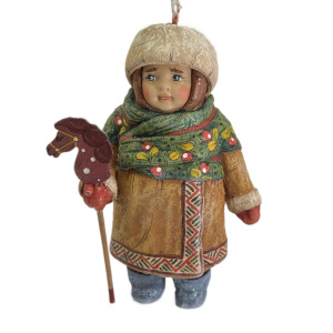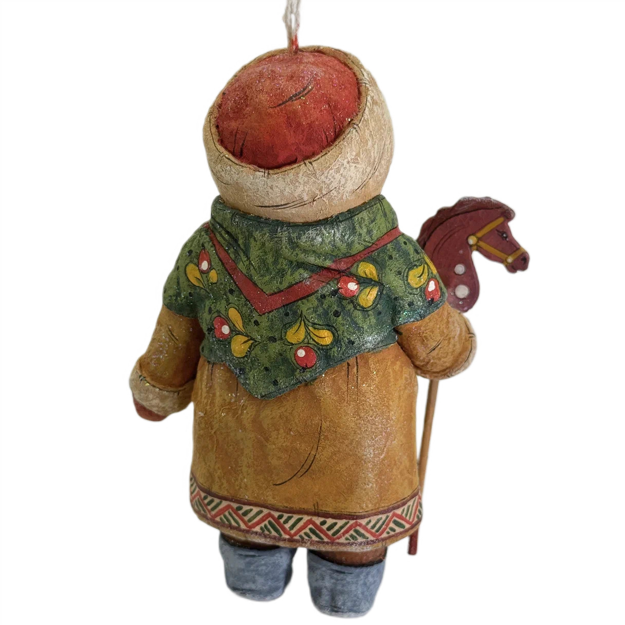 Коллекционная елочная ватная игрушка "Ладушка с лошадкой" из коллекции "Советское детство"