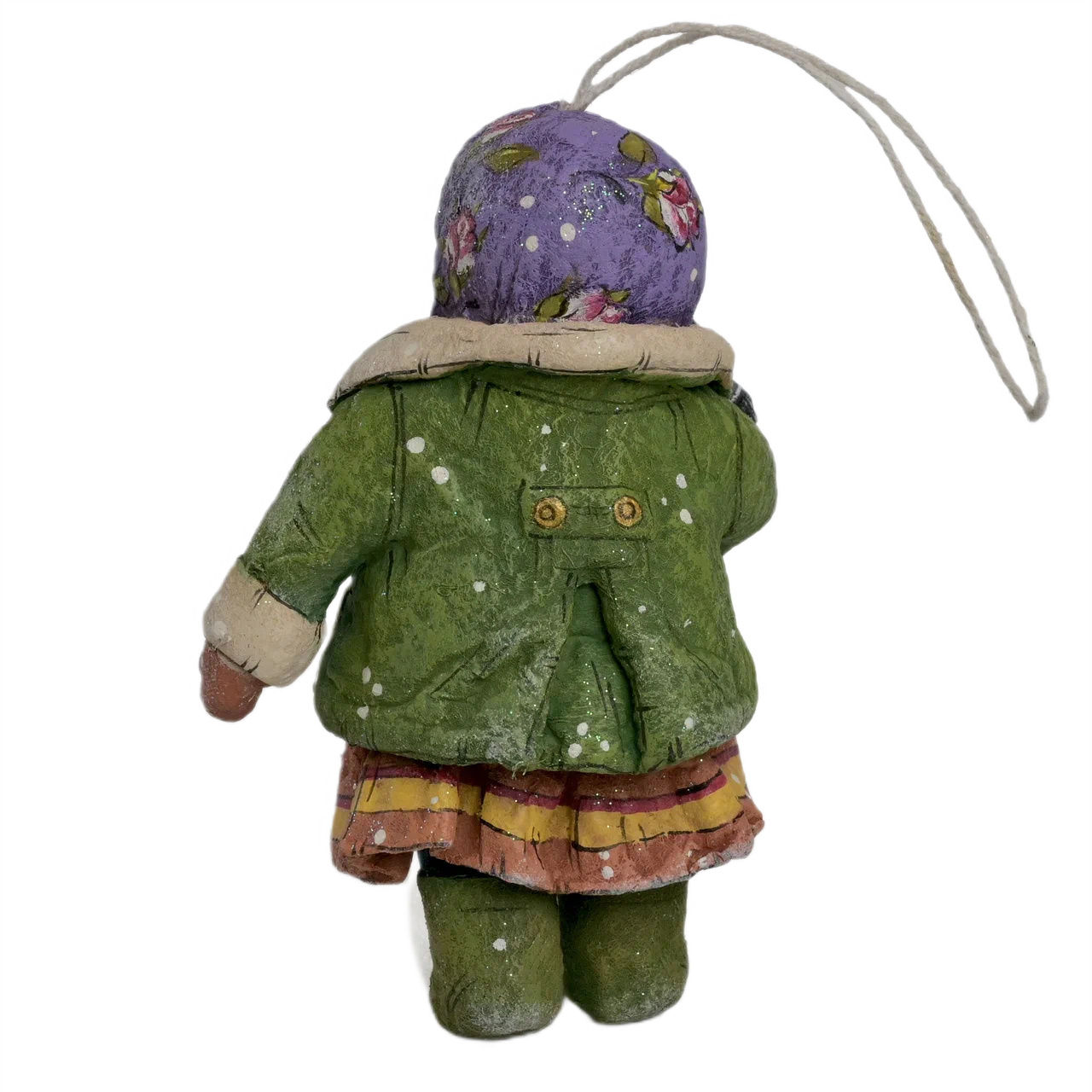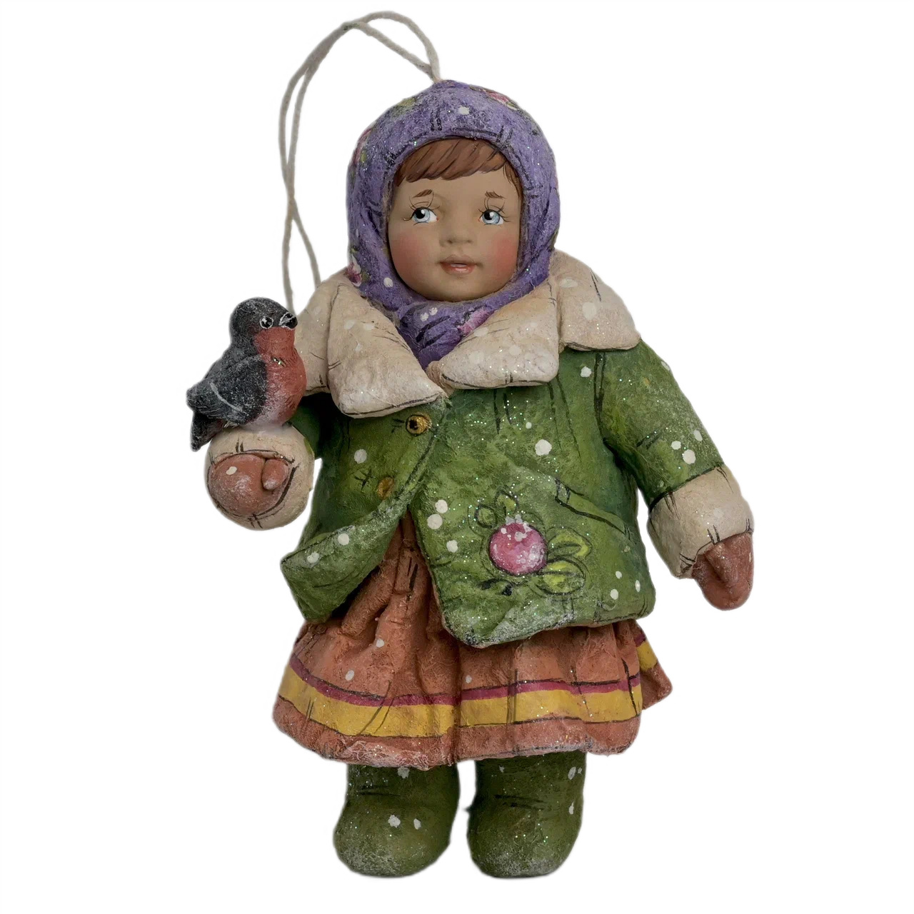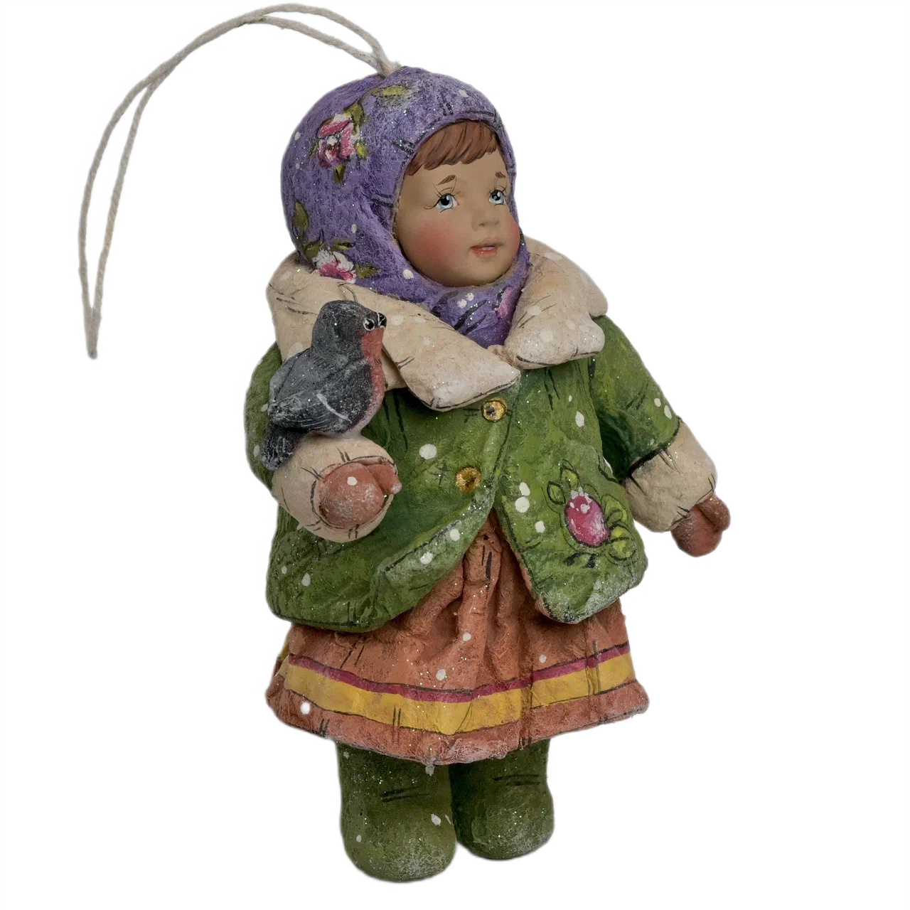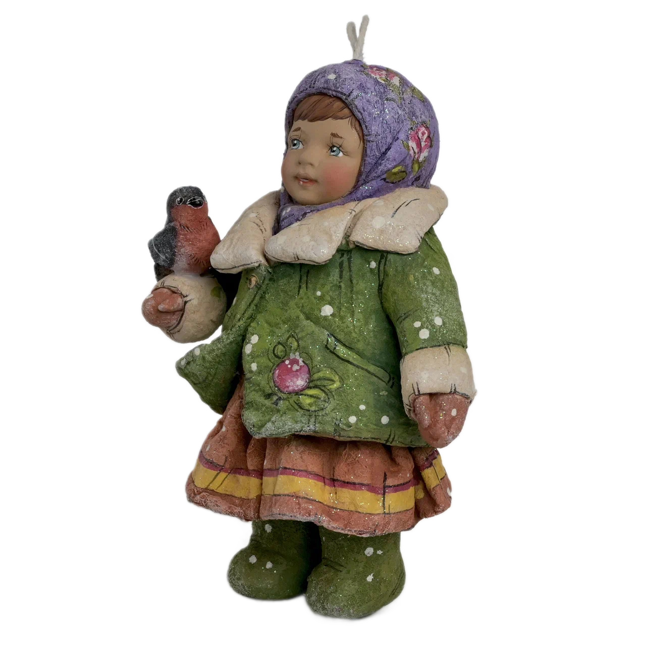 Коллекционная елочная ватная игрушка "Леночка со снегирем" из коллекции "Русский север"