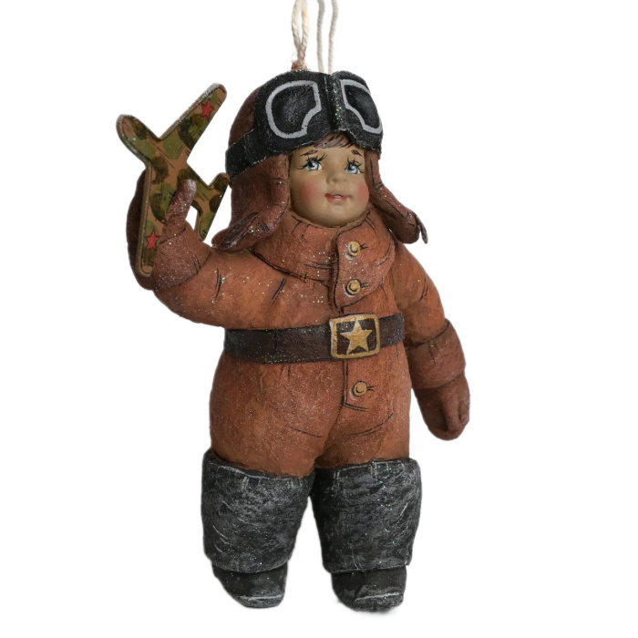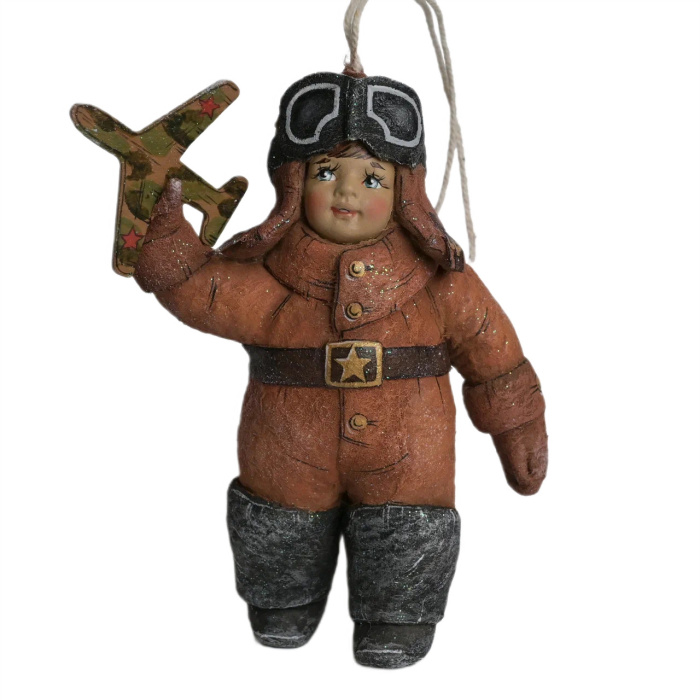 Коллекционная елочная ватная игрушка "Летчик в винтажном стиле" из коллекции "Профессии"