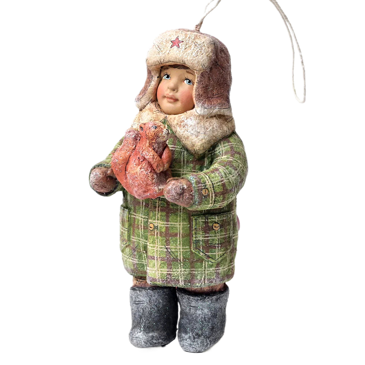 Коллекционная елочная ватная игрушка "Левушка с белочкой" из коллекции "Советское детство"
