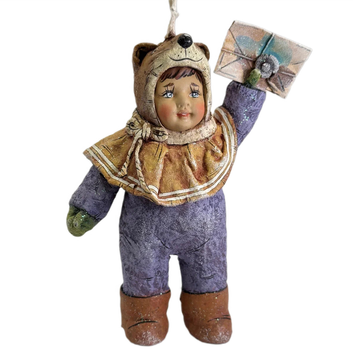 Коллекционная елочная ватная игрушка "Людушка в костюме медвежонка" из коллекции "Детский утренник"