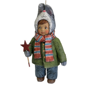 Коллекционная елочная ватная игрушка "Мальчик в костюме снеговичка" из коллекции "Детский утренник"