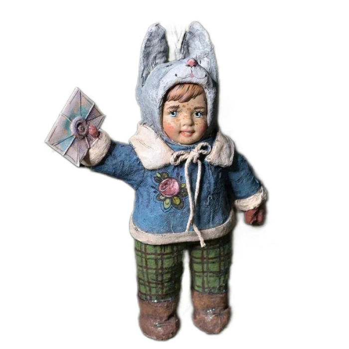 Коллекционная елочная ватная игрушка "Мальчик в костюме зайчика" из коллекции "Детский утренник"