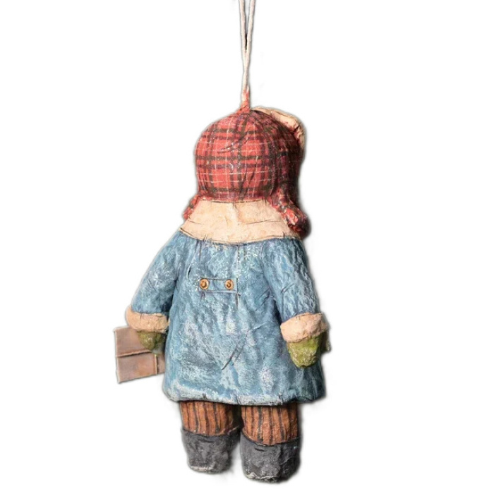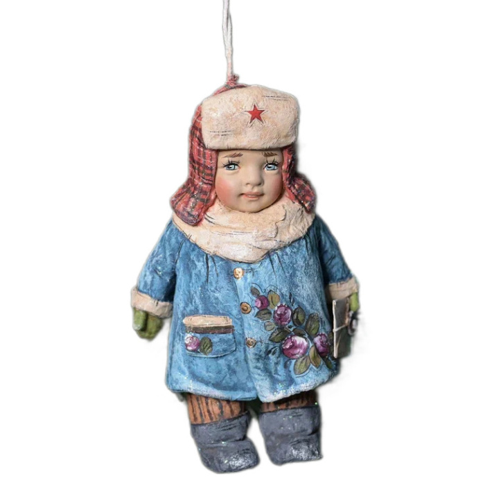 Коллекционная елочная ватная игрушка "Мальчишка в ушанке с письмом" из коллекции "Советское детство"