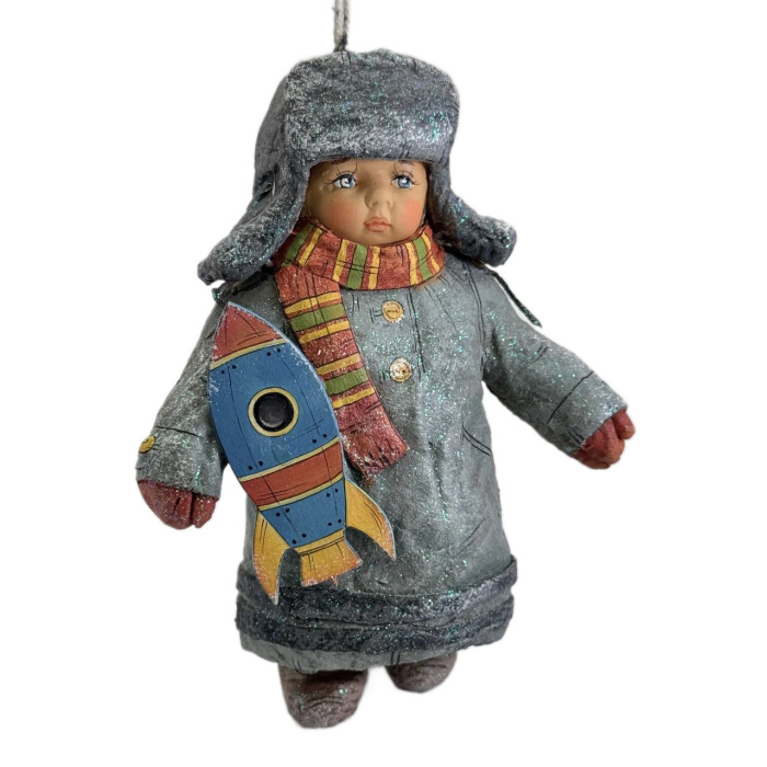 Коллекционная елочная ватная игрушка "Малыш с ракетой" из коллекции "Советское детство"