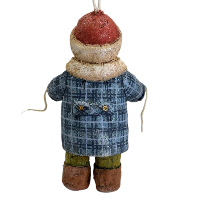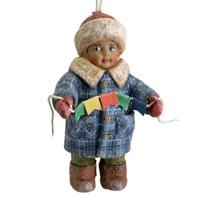 Коллекционная елочная ватная игрушка "Малыш в клетчатом пальто" из коллекции "Советское детство"
