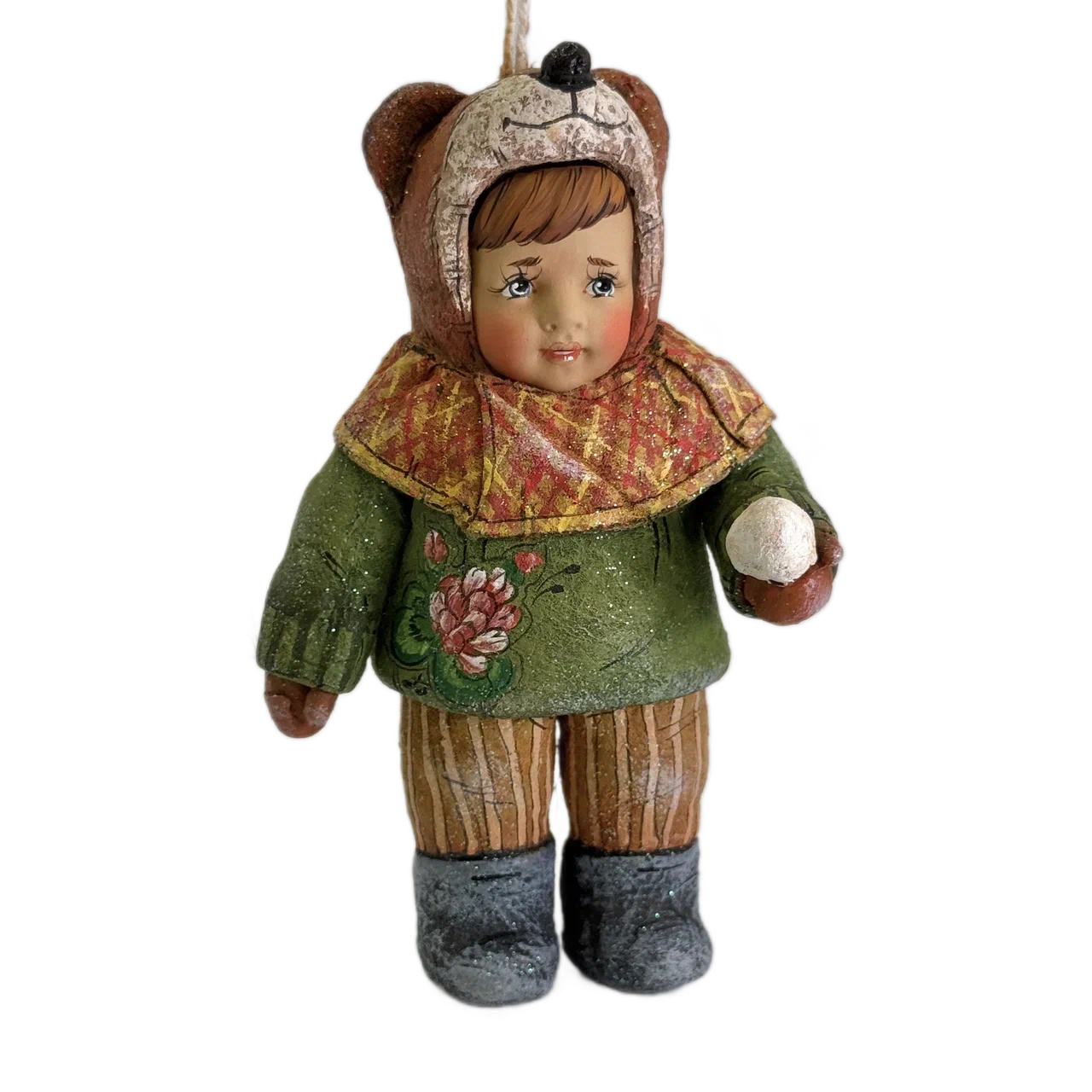 Коллекционная елочная ватная игрушка "Малыш в костюме медвежонка" из коллекции "Детский утренник"