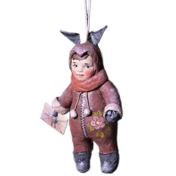 Ёлочная игрушка ручной работы, выполненная из ваты и картофельного крахмала по традиционной русской технологии. Личико — реплика антикварной куклы XIX века, что придаёт изделию особое очарование и коллекционную ценность.