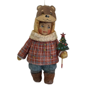 Коллекционная елочная ватная игрушка "Малыш в маске медведя" из коллекции "Детки в масках"