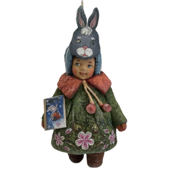 Ёлочная игрушка ручной работы, выполненная из ваты и картофельного крахмала по традиционной русской технологии. Личико — реплика антикварной куклы XIX века, что придаёт изделию особое очарование и коллекционную ценность.