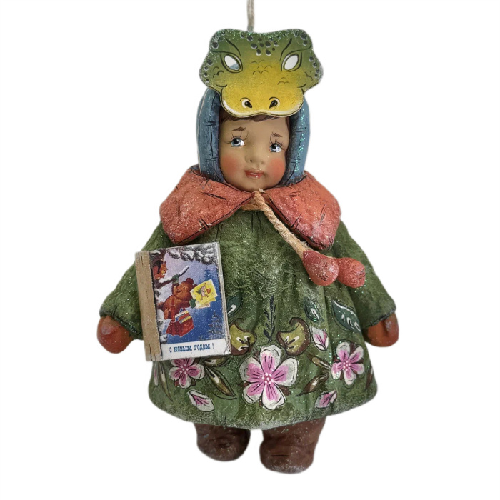 Коллекционная елочная ватная игрушка "Малыш в маске синички" из коллекции "Детки в масках"