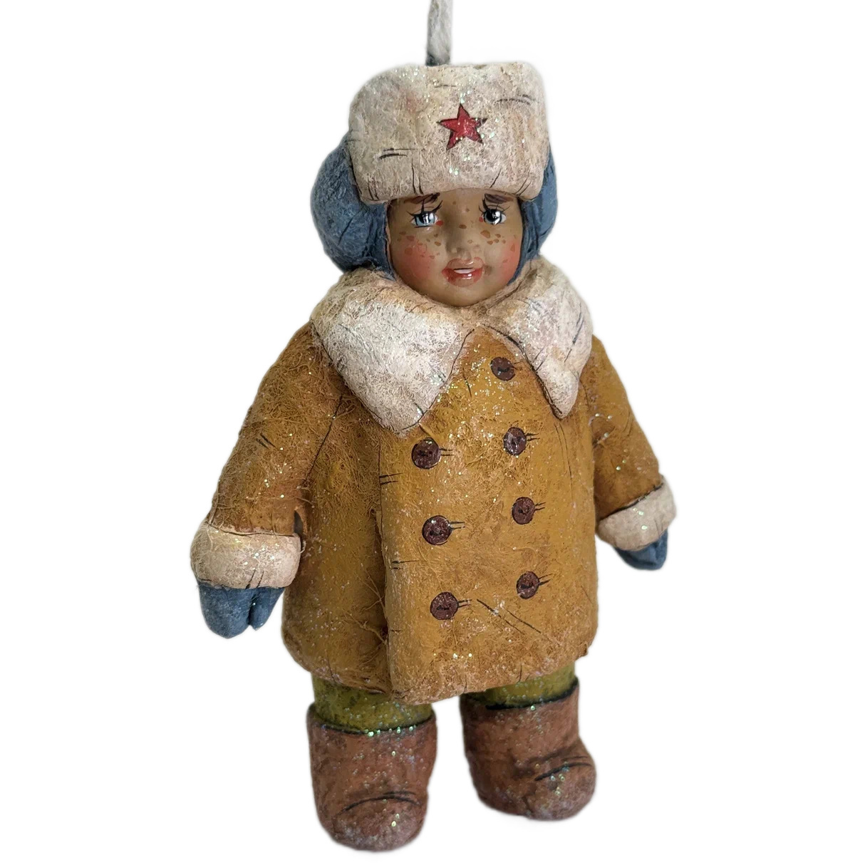 Коллекционная елочная ватная игрушка "Малыш в тулупе" из коллекции "Русский север"