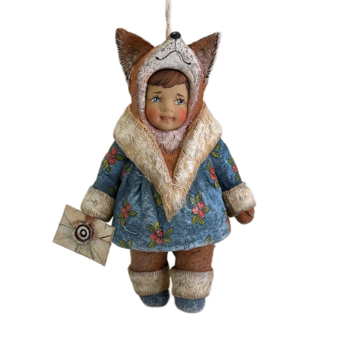Коллекционная елочная ватная игрушка "Малышка в костюме лисички" из коллекции "Детский утренник"