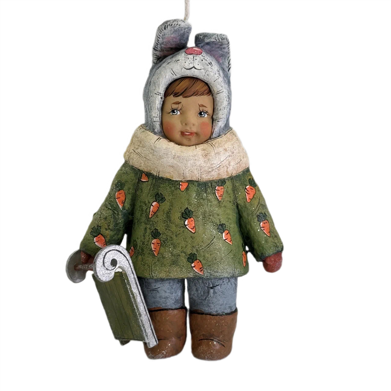 Коллекционная елочная ватная игрушка "Малышка в костюме зайчика" из коллекции "Детский утренник"