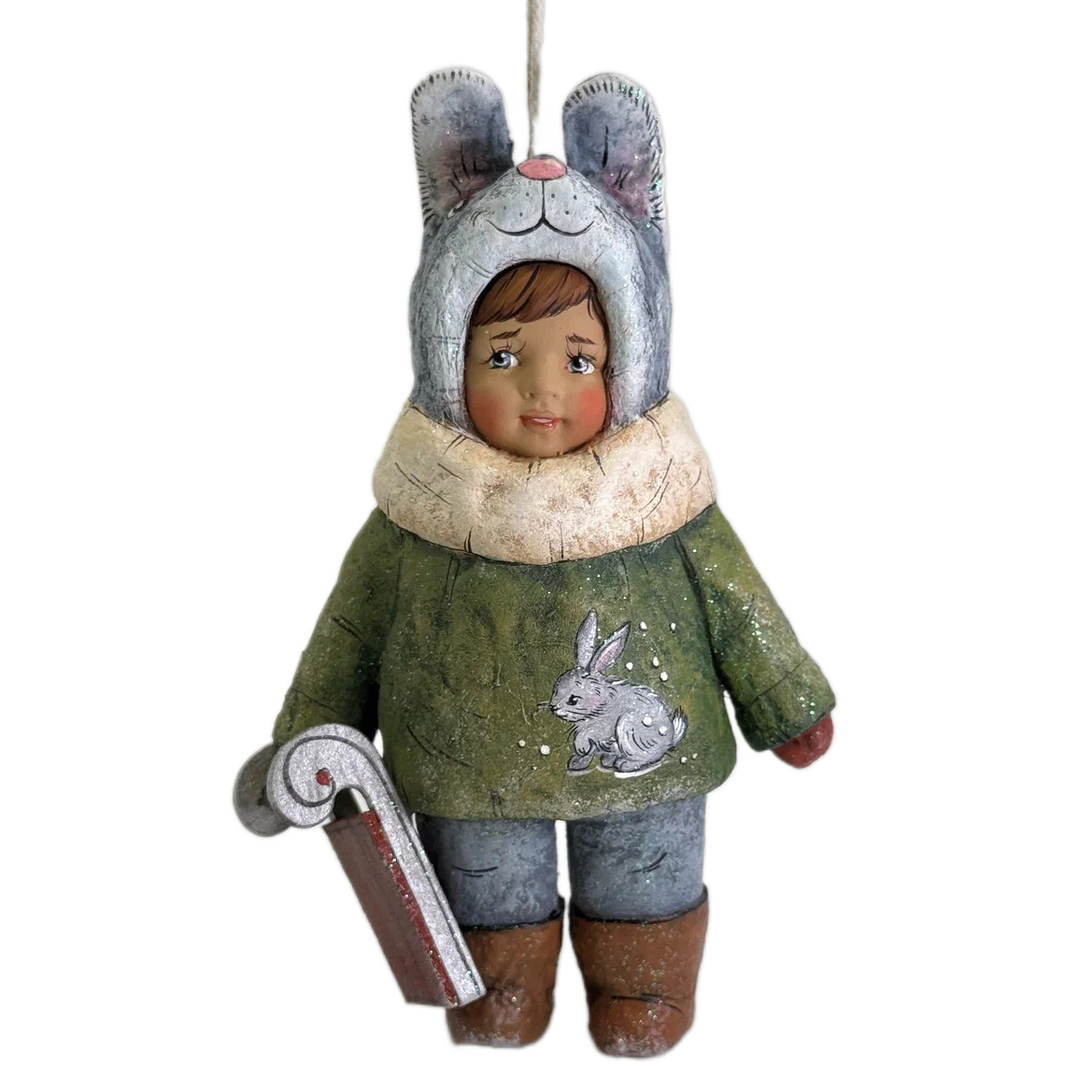 Коллекционная елочная ватная игрушка "Малышка в костюме зайчонка" из коллекции "Детский утренник"