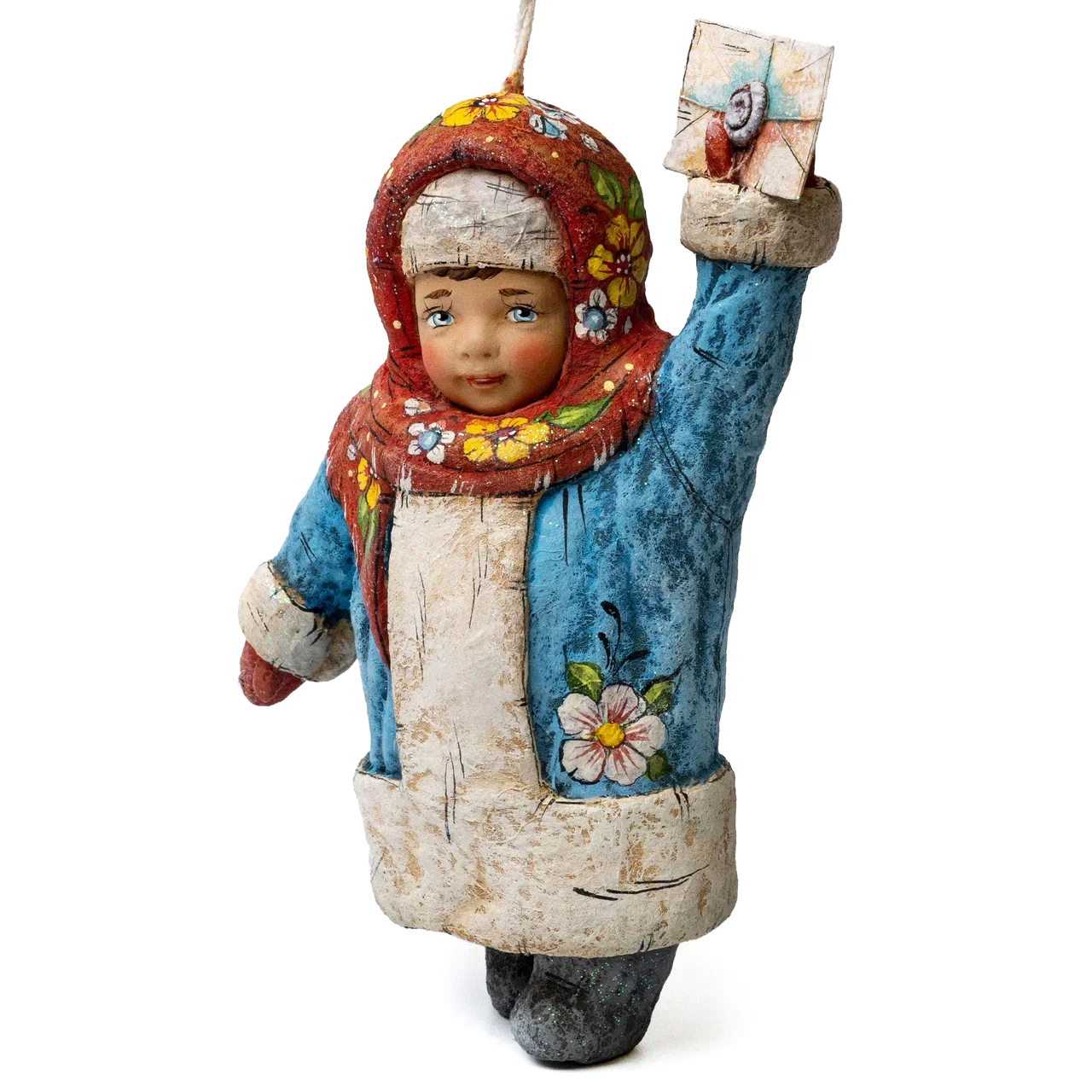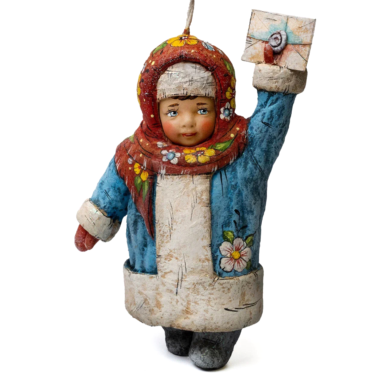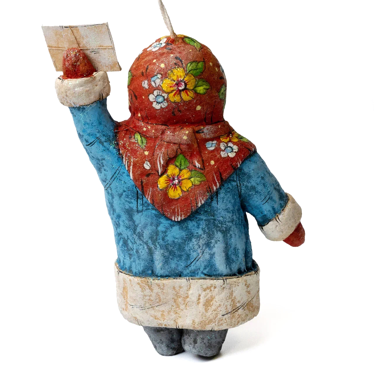 Коллекционная елочная ватная игрушка "Марфушенька с письмом" из коллекции "Русский север"
