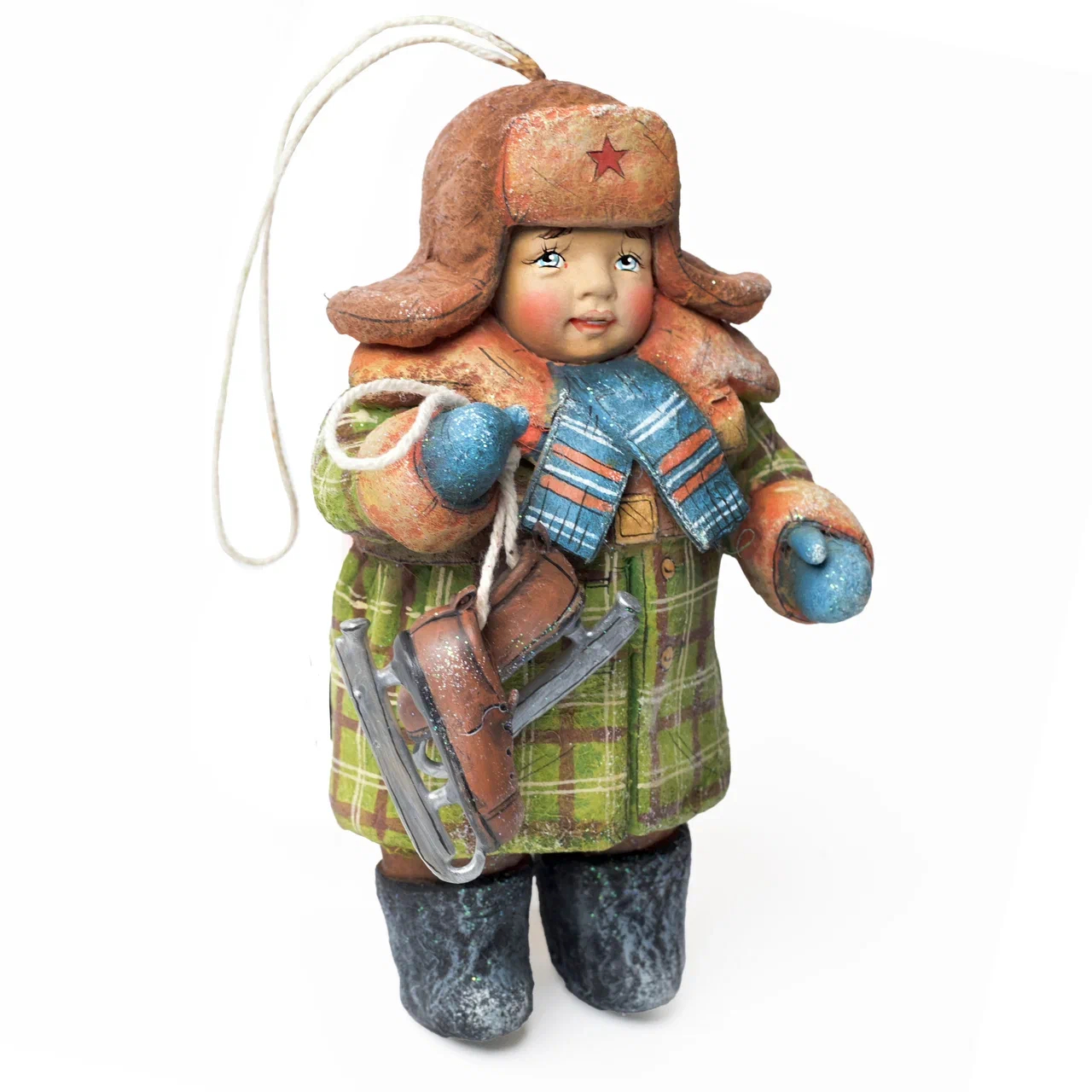 Коллекционная елочная ватная игрушка "Марк с коньками" из коллекции "Зимние забавы"